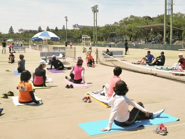 知多市役場近くのテニスコートにて 運動ストレッチ指導 市内テニスサークル全般