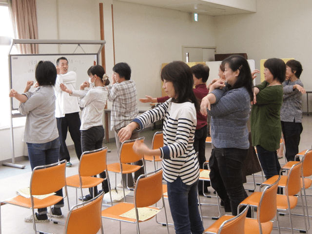 障碍者施設にて保護者に対する肩痛腰痛にならない運動指導
